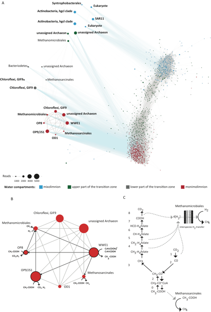 3rd - Steven Hallam: The image combines network analysis with single-cell genomic sequencing to infer metabolic interactions between uncultivated microbes inhabiting salt stratified Sakinaw Lake.